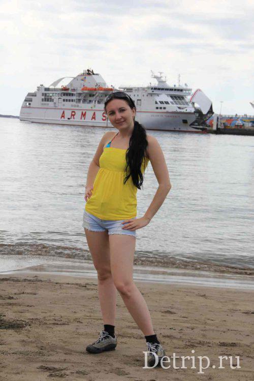- Пляж Плайя де Лос Кристианос (Playa de Los Cristianos) – полукруглый пляж с темным песком длиной 400 метров. К его недостаткам можно отнести близость крупного порта, из которого отправляются корабли на соседние острова. Отсюда мы плавали на остров Ла Гомеру. В связи с наличием порта возникают сомнения в чистоте воды. Большинство здесь просто загорает, а купаться предпочитает на соседнем пляже.