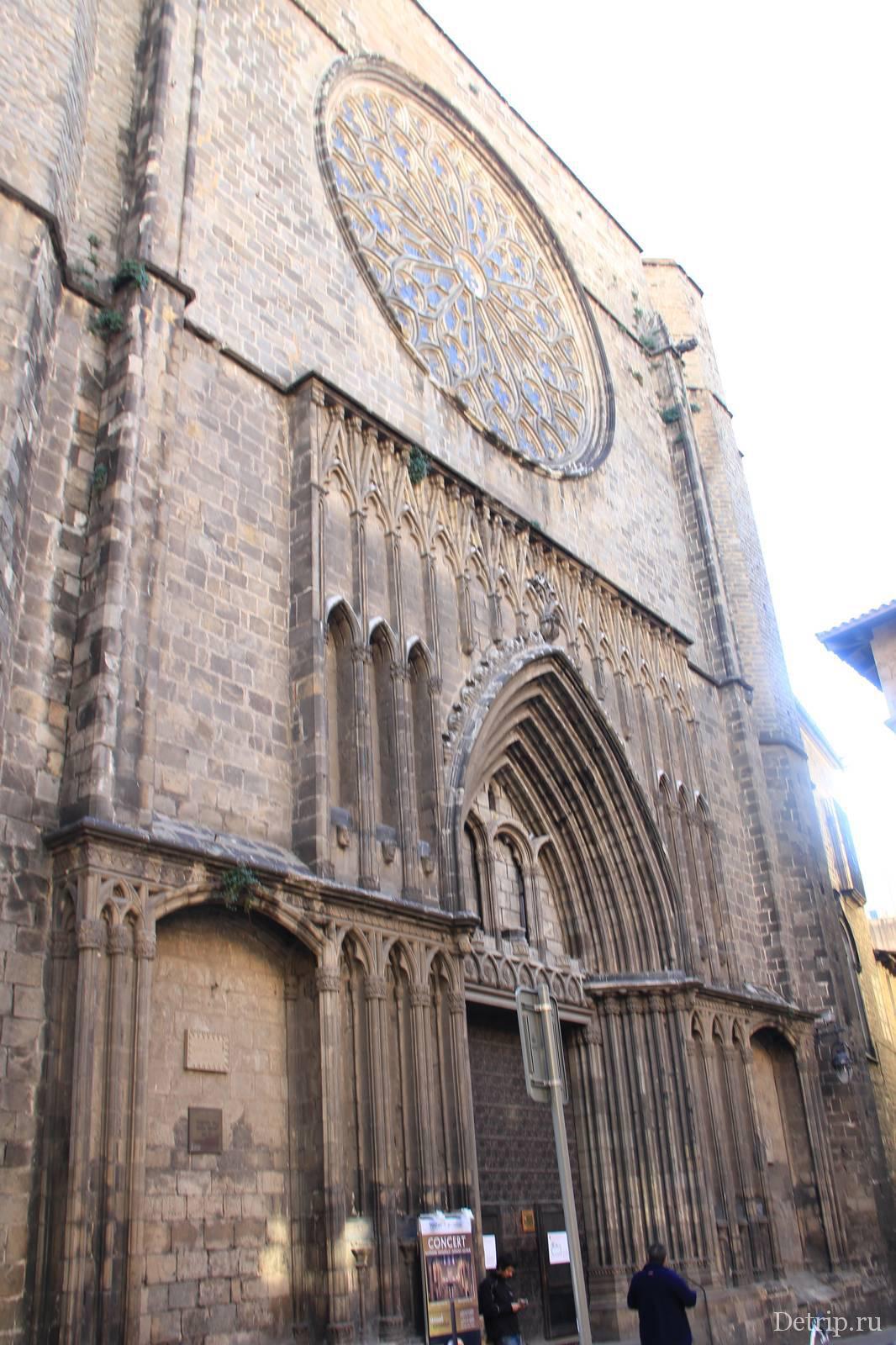 Готическая Церковь Санта-Мария дель-Пи расположена на Placa del Pi, площади Сосны. Сворачивая с узких улиц готического квартала на эту площадь, попадаешь в очаровательное место со своей атмосферой. Pi – это исковерканное «pine» (сосна). Многие столетия это дерево было символом и украшением Placa del Pi. Возвели церковь в 14 веке. За время своего существования она пережила несколько землетрясений и реконструкций и сейчас находится в хорошем состоянии. Узнать ее можно по огромной готической розе над входом и двум восьмигранным башням. Вместе с соседними зданиями этот храм образует единый ансамбль площади Placa del Pi.