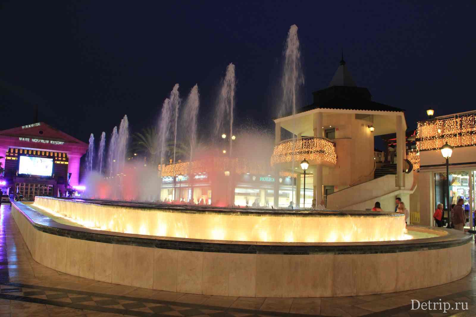 А после шопинга можно получить яркие впечатления в концертном зале «Пирамида Ароны», созданном в античном стиле, или поужинать в одном из кафе. Вечером проспект озаряется огнями поющего фонтана. Но не настраивайтесь на грандиозное шоу, как в Барселоне, здесь все просто.